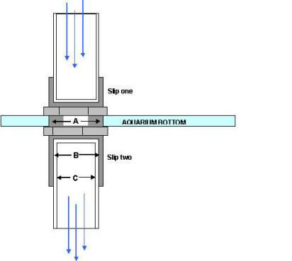 Hang-On Overflow Noise (Water Volume vs. Pipe Diameter) -- 05/14/07 I just upgraded my 29 gal reef to a CPR100 overflow and draining into a 10 gal sump. I decided to hard pipe the overflow in with 3/4pvc and two elbows. No matter how I position the straight down tube into the sump sock I get the constant sucking and releasing sound in the box. <<You are likely trying to push too much water through the overflow. The 1' bulkhead that comes with the overflow will only handle about 300gph (yeah, I know they are rated for more flow...just not practical), by reducing the output diameter to ¾' as you have done with the PVC pipe you have reduced the flow capacity even more to about 150gph or so...which is more than enough, by the way, for this tank/sump combination in my opinion>> Will the Durso pipe solve this problem of noise? <<I have seen what looks like a modified/compact version of the 'Stockman' standpipe for hang-on overflow boxes (see here: http://www.aquariumlife.net/projects/diy-overflow/74.asp), but whether or not it will help is probably a matter of trial and error. It may help smooth flow a bit but if you are getting a surge effect as you describe you will probably have to back off on the pump output from the sump (easily accomplished with a gate-valve plumbed in-line after the pump)>> Even if I put the sump pipe under water it still makes and ton of noise and I am really trying to understand this problem. I want the tank to run with the least amount of noise as possible and the splashing in the sump will be easy to fix if I can get the overflow to stop sucking and making gurgling noises. Any other suggestions? Thanks. Will <<Definitely sounds like a case of too much water volume coupled with a too small throughput diameter to me. Regards, EricR>> Re: Hang-On Overflow Noise (Water Volume vs. Pipe Diameter) -- 05/15/07 Question regarding the 3/4 PVC. <<Ok>> I am trying to get some clarification on what sizes I have used. <<...?>> The 1'' bulkhead accepts a schedule-40 3/4'' connection piece and then goes to 1" elbow. <<Mmm, no...the 1' bulkhead will utilize 1' pipe/fittings...a 1' ell will require 1' pipe. If you have used ¾' pipe then you either have ¾' fittings and bulkhead, or you have use 1' to ¾' reducer fittings>> I noticed that the 1" PVC pipe is the same size as ¾' fittings. <<The outside diameter of 1' PVC pipe is very close to the outside diameter of a ¾' PVC fitting, yes...but in no way are the two compatible without the proper reducer fittings>> Why is this. <<The ¾' fitting must be large enough to fit around the outside diameter of the ¾' pipe...and a 1' fitting for 1' PVC pipe is noticeably larger by comparison>> Basically I am saying that 1" pipe fits in 1'" bulkheads but the 1" is really ¾' in order to fit in that space. <<No...>> This is confusing to me and makes me wonder what size I hard piped mine in with. Please advise. <<If you used 'all' 1' PVC fittings and pipe then figure your flow based on a 1' diameter drain...if you used ¾' pipe or fittings (even just one) in combination with the 1' PVC pipe and fittings, then figure your flow based on a ¾' diameter drain>> Also my Mag 5 with head pumps about 300 gal/hr and I was wondering if the gate-valve would be alright to use to restrict flow from the pump? <<Absolutely...the way these magnetic pumps are designed/work makes them very compatible for use with a gate-valve for tempering flow>> Thanks for your help. Will <<Happy to share. Eric Russell>> Filter question, overflow boxes, 4/30/07 I have read over your Q&A's and still have a couple questions. I hope you can help. I am setting up a 150 gallon saltwater tank, which is not pre-drilled. The LFS nor the local glass company will touch it, which means I need an (two) overflow. Would the overflow with the airlifted pump or the U-tube be a better choice? <The latter> (I know you don't suggest either one, but I have no choice) Would two boxes, with a 1 1/2" outlet be ok with a return pump to handle 00 gph? <? I would not use a pump/mechanism that just one of these (should the other fail) could not accommodate> I am going to go with a sump (using the one posted as a design) or a W/D. The LFS advised the W/D, due to my messy eaters. <Nah> Would the bio-balls creating nitrates still be a concern? <Yeah> I've read you can use "Home Depot" sand? Do you recommend this or stay with the aragonite sand and seed it? <Read on... http://www.wetwebmedia.com/marine/setup/index.htm Scroll down to the brown line...> My LFS also advised, if you want to get up and running overnight, use the boxed seawater. Is this really as beneficial to the tank as would be the actual cycling process? (Or are they looking for a $$?) <A bit of both> Lastly, can you clarify these for me. If putting the heater in the sump or W/D, would a 800 watt heater be ok? <Yep> If putting the skimmer in the sump or W/D, does the water flow back into the first chamber? <Mmm? Flows from the first on ward...> And if using seafood from the seafood dept. should you freeze it before use? <Not likely necessary... Should be safe if deemed fit for human consumption> Thank you for your time, I'm not sure if the LFS is helping or if they are looking for the $$. After reading your site, I wanted to make sure I'm headed in the right direction. I will continue to read, as there's sooo much to learn. <Ah, yes... and to enjoy, share. Do ask about... perhaps there is a more local club... or distal one that you can query others re who drilled their tanks... Some clubs have the gear, folks that actually do this themselves... And do keep reading! Cheers, Bob Fenner> Re: How many holes should be drilled in bottom of tank for a CL? 5/2/07 Many THANKS for your advice and links! I'm learning so much that I needed to know. GS <Ahh! Outstanding! BobF> Re: Filter question, overflow boxes, 5/7/07 Thank you for your recent response. Regarding the U-Tube Overflows. I could use 2 overflow boxes for 600 gph (1 in @ corner) and a return 