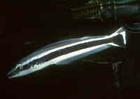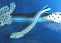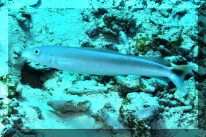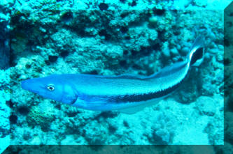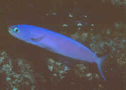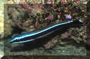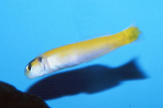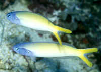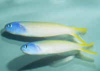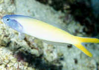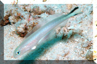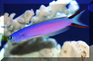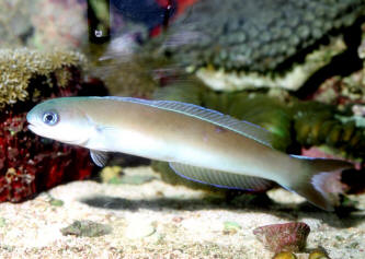 Disease: These fishes show little "gray area" in their health... they're either in the "pink of health" or "dead and dying"... Sand Tilefishes do contract parasitic infestations but are happily just as susceptible to treatment with the common medications, protocols for curing same. Once "going downhill" with evidence of bacterial (secondary) complaints they rally recover. Enough quotation marks and similes for one article, eh? Reproduction: Not spawned, reared in captivity. Eggs and sperm are released into the environment, larvae float in the upper water column as plankton for several days... swimming down to suitable bottom if fortunate with development. Not sexually differentiable externally. Cloze: Our now-defunct retail outlets, Wet Pets left these fishes out of our "assortment" entirely as most were so apparently touchy as to perish with the best of care offered. However, if one can secure initially healthy Sand Tilefishes, place them in large COVERED settings, feed them frequently on meaty foods, and put up with their reclusive natures, these can prove to be sturdy long-lived captives. As I re-state though, these are not easy fishes to keep, and most all do perish in inexperienced, unknowing hands. Bibliography/Further Reading: Baensch, Hans & Helmut Debelius. 1994. Marine Atlas, v.1. MERGUS, Germany. 1215pp. Fenner, Robert. 2001. The sand tilefishes. FAMA 7/01. Nelson, Joseph S. 1994. Fishes of the World. 3rd Ed. Wiley. 600pp. Randall, John E. 1981. A review of the Indo-Pacific Sand Tilefish. FAMA 12/81. |