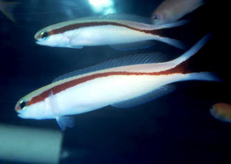 Selection: Looks: Appearances can be deceiving with the Sand Tilefishes... examine prospective purchases very carefully for signs of damage... cloudy eyes, any bloody marks on the body or fin origins, damage to the mouth should exclude buying those specimens. Avoid too-thin ones as these rarely rally to full fitness. Feeding: Do ask that the fish/es in mind be fed in front of you... most all Tilefishes in living condition will greedily eat all types of foods, but make sure that they are eating... the types of foods you intend to offer. Behavior: These are skittish species that will definitely be reacting to your presence... as in leaving, diving into cover... If they "just sit there" something is wrong. Leave them. Handling: Be sure to move sure and steadily using two nets (one to guide, the other to lift) in moving these fishes... as they are very quick and exceedingly willing to launch themselves out of their tanks. And one more note re their handling; they bite... larger ones can draw blood. The Sand Tilefishes must be double or triple bagged (spines in the forward parts of their fins) in large bags with plenty of water and pure/straight oxygen... and packed in the dark... to survive being shipped any long period of time (more than minutes). Captive Environment: These active fishes need ROOM, and lots of it... Even small specimens of the diminutive species should be placed in at least fifty five un-crowded gallon systems... With plenty of rubble depth to borrow in, other rocky cover to hide in. Filtration/Aeration/Circulation: Need to be brisk. These fishes are messy eaters, diggers... and need good water movement and gaseous exchange to keep up with their active metabolisms. General Conditions: No special chemical, physical water quality preferences, but most species do best in subdued lighting. Reef Use: Fine in all types of reefs, but will consume small enough crustaceans. Other Fishes: Fine with most all fish life, including conspecifics, other Sand Tilefishes if there is sufficient room. Most effectively displayed in/as pairs/couples without other fish life, unless the system is huge. Do not place with larger, active, aggressive tankmates like Triggerfishes. Foods/Feeding/Nutrition: