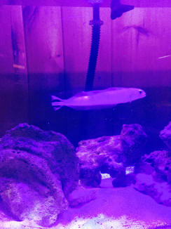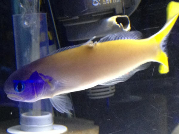 Purple Tilefish Behavior...Early Morning Suicide Jumps - 5/11/06 Hello, <<Hello Bret>> I've been using your website as a guide since I started in the hobby over a year ago and it has helped me out tons! <<Great>> My question today is about my Purple tilefish. It kills me that there is so little information about these guys! I only bought mine b/c my LFS gave me a good deal on it and told me I have a month if anything happens for a full refund. So I gave it a try. Its tried to jump twice but always at about 3am so It wakes me up and I put it back in. Like the other person, my tank is covered but it always finds that little hole by the skimmer! It has been eating like a pig since I got it...Mysis, chopped scallops and it LOVES frozen silversides. My question is, I hear they are best kept in pairs. Do you think If I add another one now it will help make it feel more comfortable or stress it out more? There is another LFS that has one that looks pretty good but I don't want to stress the one I currently have out more then I am sure it already is. The other one at the LFS is about the same size but maybe even a bit smaller. What are your thoughts on this. <<The Purple Tilefish may be aggressive toward others of its own kind. If the dealer is willing to take it back, then you may want to give it a go. The jumping behavior may stem from lack of a proper environment for him. You should have at least a three inch sand bed as these guys do like to burrow in the sand. I also recommend at least a 50 gallon tank for them. Does this sound like your system? James (Salty Dog)>> Thanks for your help <<You're welcome.>> Bret Caprilla Re: Purple Tilefish 5/12/06 Thanks for the quick reply. <You're welcome.> My tank is a 55g. The sand bed is about 2-2.5" in the area where the tilefish has made his home. It stays most of the time in a cave between 2 rocks with just its head sticking out and body hidden in the rocks. I have seen them before together in the stores and they always stay together, that's what made me think it might be better if I had 2. <Info is based on the normal behavior of the fish, and, as I mentioned, "may be aggressive toward others of its kind."> I know some of them like the flashing tilefish hide in the sand. My LFS has one in their display tank and when it got scared it would go straight in to the sand, but I have never seen my purple one go in to the sand. Thanks again for your help... <You're welcome. James (Salty Dog)> Bret Caprilla Copper overdose in Purple Tilefish? 1/21/06 Bob, <Art> I recently purchased a Purple Tilefish, who was eating like a pig, four times a day. The second day, I noticed a light outbreak of ich on him, <... no quarantine> so I began to treat him with Seachem Cupramine (He is sharing a 30 gal. quarantine tank, <Oh!> only glass and water, with a Comet, who has shown no symptoms). I built up to the recommended dose at half the manufacturer's recommended schedule, and as I got nearer to 6L (the total dose recommended for 30 gal., in order to reach 0.5 ppm), I dosed in increments of one fourth the manufacturer's directions. I did this because there is very little info available on the Purple Tilefish, and I suspected he was sensitive to copper. <You are correct here> He tolerated the dose with no side effects whatsoever to a total of 4.25L (between 0.25 and 0.5 ppm), but the morning after I added another .75L, to a total dose of 5.25L, he was listless, stopped begging for food, stopped eating, started twitching his head, and he has the darkened, splotchy areas on his body (spine and around the eyes) that I have come to associate with copper poisoning (yes, I have done this before). <Yes...> I immediately performed a 10 gal. (one third) water change, and installed a couple of poly filters to remove the copper. A day later, he is still alive, but also is still not eating, still twitching, still has the dark areas, and one eye appears to be slightly popped, although not cloudy. <All symptomatic...> The Comet, meanwhile, appears to be fine. He may have skipped a couple of meals, but he has resumed eating. Are the symptoms I described consistent with copper poisoning, in your experience? <Yes> Can fish recover from this, and if so, will his normal coloring return, and what about twitching he pop eye? <All can be recovered from> This is the first time I have seen these symptoms associated with copper poisoning. <Mmm, would bear your "writing all up", presenting as an article, pitch to hobbyists, professional aquarists> As far as the Comet is concerned, I am naturally reluctant to continue his quarantine period with copper. If he shows no symptoms of ich for the rest of his quarantine (another week and a half), can I add him to my display tank at that time, and be reasonably sure that I have not introduced the parasite to the display tank? <I might risk this... passing the fish through a prophylactic dip (just slightly reduced spg, a spritz of formalin mixed in)> I recently finished going fallow, and I don't want to do it again, but I have more fish on the way that I need to put into quarantine. I would very much appreciate your expert advice. Thanks, Art <Difficult to state what I might due w/o looking at the animal, but am inclined to encourage your moving it... lest it perish otherwise. Bob Fenner> Tilefish In Trouble? I bought a tilefish about a month ago. He is being quarantined in a 72 gallon tank before I add him to my display tank. He is eating fine and seems okay except I noticed that he has circular indentions on his head.They are different sizes. I don't see it any where else on his body. Is this normal for tilefish? What might it be? Thanks for your help! Nicki <Well, Nicky- lots of possibilities here. Could be some sort of parasitic problem, could be Head And Lateral Line Erosion (check water conditions and diet), or could even be an injury of some sort. If the fish is eating okay, and seems otherwise unaffected, I'm inclined to recommend continued close obs