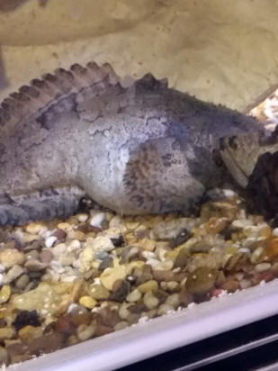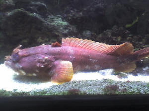da saddle> Toadfish Dear Bob, Can you tell me if two Orange Toad Fish can go together? Sincerely Blake <Blake, Yes, two toad fish can go together as long as they are the same size. If one is bigger than the other then the smaller one might get eaten. Even if they are the same size, one might try and eat the other. Good Luck. MikeB.> Oyster toadfish Hi. I recently purchased an Opsanus tau (oyster toadfish) and was wondering whether or not he could be tank mates with an Opsanus beta (orange toadfish). I know one is brackish and one is full marine. <Don't think/believe that either would be "happy", live that long being converted to the environment of the other... besides, this is NOT a social animal> Is it possible to combine them and convert the oyster toadfish over to marine or would I be better off just not trying it all together. I cant find much information on them being tankmates or having any at all...I am not sure the oyster toadfish would appreciate full marine conditions, although it was tossed up in the discussion. Thanks for the help! <I have seen O. tau in the wild (my pix are on WWM)... always solitary, shallow water... and a few times in Atlantic seaboard public aquaria... Bob Fenner> Re: Freshwater stonefish Hi Bob <Hello Kerri> I contacted you a while ago about our "freshwater stonefish" (unclassified, but of the family Batrachoididae), of which I have been meaning to send you a picture and so I have finally sent you 2 small video clips... Sorry for the delay. I hope that you find these clips useful. This "stonefish" is from Gambia and we are unable to sex them at the moment. <Can't open them... something to do with no match with XP and RealPlayer> Anyway, he seems to be sick or stressed and I was hoping you could help me. He binged on live fish - small tilapia and guppies - for about 3 months and then he just started fasting, he exhibited what I would assume was hibernating behaviour, always hiding, not moving much, but no signs of stress or disease. This has been going for about two months now. Then last week we noticed that the bulge in his abdomen - where had eaten so much - has a depression running down the centre, like he has 2 swollen lobes running down his abdomen. We were advised by the pet shop that this may be a sign of constipation, and then yesterday we found droppings (for the first time in 2 months), but they were small and whitish-grey, which I know is a definite sign of constipation. He has also begun breathing deeply, taking large "gulps" often. <Could be "natural" (non-constipated) behavior> Please would you give me your opinion of what might be wrong with my fish, and might these two symptoms be related? Is there anything I can feed him or treat him with (bearing in mind he only eats live fish)? Thank you for your time, Regards, Kerri <Perhaps an internal blockage... might be due to a parasitic condition, a nutritional deficiency. You could look at the fecal material under a microscope... Perhaps administer Epsom Salts (either as a bath or directly to the water)... Is the animal in straight freshwater? Bob Fenner> Does He Bite? -- FW Lionfish (12/11/2003) Hi, I could use a little bit of help. <Steve Allen here, I'll give it a shot.>I just purchased this fish from a pet store. The owner told me that it is a freshwater lion fish. <Better to research before you buy> He is a strange looking fish but beautiful just the same. <my favorite kind> He looks like one of those rock fish you would find in the ocean, at the same time he looks like a mud skipper. Anyway my question is what are the care requirements for him? What pH level should he be in? What does he eat? I have tried several types of food but he doesn't seem to be eating anything. What type of fish can I house with him? Right now he is housed with some Angle fish, Parrots, and Pink Convicts. It doesn't seem to be a problem yet but I would just like to make sure. I would be very thankful for any information that you can give me on my strange little friend. <Could he be one of these? http://www.wetwebmedia.com/batrachoididae.htm If so, the info you need should be available from the link. If not, we may need a picture to get an ID. You could also ask the pet store for Genus & species. Thank you, Dawn <You're welcome. BTW, I'm sure you like the pretty fond you sent your question in, but it is very difficult for us presbyopic 40-somethings to read. Please send future inquiries in a standard book such Times New Roman--much easier on the eyes.> Fresh/Brackish Water Stonefish Question (11/21/03) Hello! <Hi! Ananda here this afternoon> We have a problem with our stonefish. We bought him about half a week ago. He is a fresh/brackish water variety, and they say he is non-venomous. I cant find his exact breed in your pages here because from what I can find, all the freshwater/brackish water ones are at least slightly venomous. <Do check back with your retailer and see if they can get more info regarding the species name.> Anyhow, he is handfed two tuffies a day, as was instructed by the specialist we bought him from. <Minnows?? I would try to wean him off of live food, as it could easily carry disease.> Well, today for the first time he wont eat, backs away from our hands, and appears to be gasping, half opened to fully opened mouth. There appears to be no toughie stuck in his mouth, or anything like that. The water quality is normal, no ammonia or chlorine, ph is in the clear. <I'd really prefer some numbers on these... did you check nitrites and nitrates as well?> He lives in a 55 gallon tank with a small silver dollar, three black skirt tetras, two paradise gouramis, a red tailed shark, and two African butterflies. Everyone is getting along fine. I vacuumed the gravel today and did a 15% or so water change. Would that have hurt him? <Hmmm. Possibly something got stirred up from the gravel and was ingested by the fish? Did you vacuum the entire gravel bed? Depending on conditions, that can disturb the nitrifyin