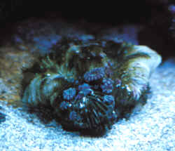 Recently thought to include two genera, the family Trachyphylliidae is represented by two forms in the genus Trachyphyllia that aquarists will recognize. Formerly described as separate genera, Trachyphyllia geoffroyi and Wellsophyllia radiata have become synonymous and are commonly known as "Open Brain" corals. Some popular literature does distinguish between the two forms as representing separate species within the genus Trachyphyllia. The authors make little distinction between the animals for the purpose of this report. T. geoffroyi predominantly represents this genus in captivity. "T. radiata" forms appear less commonly in imports. While similar in gross appearance, these two forms may have differences in their origins on the reef and subsequent captive requirements that lend to the morphological distinctions, even if not to speciation. The exact taxonomic classification of the animal is of little matter to most aquarists and is admittedly beyond the scope of the authors. This report describes the husbandry and fascinating asexual reproductive strategy of Trachyphyllia through decalcification to produce daughter colonies. Basic Husbandry for Trachyphyllia We begin first with a bit of history and general information on Trachyphyllia for improved care in reef aquariology. T. geoffroyi is a free-living animal at maturity and can be found in lagoons and protected margins of the reef buried in sand or muddy substrates. They should always be maintained as such in display. The conical skeleton of this species has evolved to serve this very orientation specifically. Placement of these animals upon rocky substrates can sometimes lead to abraded tissue from daily polyp cycles (expansion and contraction) or displacement when an inflated animal becomes imbalanced. Damage to the tissue of Trachyphylliids is not especially quick to heal and is often hampered by infection or predation. Fish, shrimp, crabs and worms are often attracted to injured Trachyphyllia to graze upon infected tissue or prey on the vulnerable animal altogether. Trachyphyllia commonly occur in moderately deep and clear waters and do not seem to be as well adapted at removing sediment as other free-living corals on soft substrates like the Fungiids, for example. This can be a problem in aquaria with inadequate water flow or active tank-mates such as sand-sifting gobies that deposit sediment upon Trachyphyllia. Moderate water flow is recommended to remove lingering sediments, although caution should be exercised to avoid too much that will compromise their mucous net feeding strategy. Ultimately, Trachyphyllia are exceptionally adaptable to a wide range of water flow if sedimentation is not a concern. With the exception of intense metal halide lighting over shallow aquaria, Trachyphyllia species have proven to be quite adaptive to a wide range of aquarium lighting. Artificial illumination favoring the blue end of the spectrum is recommended for deeper water specimens. T. geoffroyi occurs in a range of color from red through brown to green. Red and brown specimens come from deeper waters and seem to require less light, while brightly reflective green individuals are the most tolerant of bright light, hailing from UV rich, clear, less deep waters. Pale-colored specimens, such as pink or yellow, are not healthy animals but merely stressed corals that have "bleached" (specifically, they have aborted a significant amount of Zooxanthellae). In time, if the animal survives the event of stress, proper pigmentation may return. Without supplemental feeding, however, most bleached animals die from attrition. Trachyphyllia are active feeders and are able to accept larger zooplankton than most corals. Their large feeding tentacles come out at night as most corals do that favor zooplankton. Feeding at other times of day may be possible by the introduction of a stimulant such as the thawed "juice" from frozen ocean meats (shrimp and krill work well, fifteen minutes prior to feeding). Finely shredded meats or whole prey of marine origin like pacifica plankton and Mysid shrimp are very good fare. Avoid feeding zooplankton substitutes larger than ?" in size. Inappropriately large food items may be accepted by the animal but are usually regurgitated later in the form of floating mucosal rafts. In time, the animal may starve under the care of an aquarist that thought such large chunks of food were being digested. Trachyphyllias have been observed, like other free-living corals such as Fungiids, to feed with a mucosal "net" and they are known to swell to an impressive size as part of the feeding strategy. Some aquarists have noticed Trachyphyllia specimens also shrinking over time and taking on a "skin and bones" appearance. Inadequate feeding has been implicated in this phenomenon. Trachyphyllia species are not autotrophic animals to say the least. They cannot survive on the products of symbiosis alone! At minimum, open brain corals should be fed several times per week. More food may be necessary for growth. With significantly less representation in captivity than T. geoffroyi, husbandry for the "T. radiata" form is not as clearly defined although it is sure to be similar if not the same (with consideration for their synonymy). Unlike T. geoffroyi, "T. radiata" forms are not considered to be only free-living animals. It is said to be common in deeper water than T. geoffroyi and attached to hard substrates. One interesting theory about the heavily iridescent, bright green coloration of "T. radiata" (AKA "metal dome" open brain coral) is that such pigmentation may be used to refract and amplify the weakly available light in said deep water. Contrary to the common belief that many coral proteins serve predominantly to reflect UV intense light away, some proteins are instead found below the Zooxanthellae and serve to reflect light back to the symbiotic algae (Borneman, pers. comm.). This is consistent with anecdotal observations by many aquarists that t