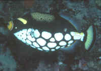 Lisa.>> Bursa triggerfish 3/27/06 I have a question for you guys, about my Bursa Triggerfish. I have had him for two days, and he is eating fine. He lays around a lot behind the rocks, and comes out every once and awhile, and then goes and hides. <To be expected...> The night I first got him he dove into a tight hole and got stuck, and I had to free him. <Can free itself> Two days later, I noticed he had a whitish film covering different areas of his body. I think it's a bacterial infection, so I have been treating with Pimafix. <Not a good idea...> I would really appreciate if you could answer this question for me. I would not like to lose this fish. <There is no question posted. Please read here: http://wetwebmedia.com/fishindex3.htm scroll down to the Triggerfishes area. Read re their Systems (yours needs a few hundred gallons ultimately, at least sixty uncrowded right now for itself), Compatibility, Disease... Bob Fenner> Undulated Trigger Tail Spikes 03/07/06 Our Undulated can change her tail spot from black to the same color as her body. My question is can they retract their tail-spikes? <Mmm, not much, no> I've tried to get a close look but it's hard to tell. It seems as when her tail spot is matching her body color it looks as if just the tips of the spines are out; and when it's black in color they appear longer. Thanks for the help. Coady Keough <Are a bit like the tangs of the subfamily Nasinae... with their "tangs" out all the way pretty much all the time. Bob Fenner> Trigger Unhappy with Christmas Gift 12/30/05 We have a Niger trigger and recently (for Christmas) our daughter gave my husband a realistic "fake" anemone ("dad, you can't keep those anemones alive") for the tank. Since the introduction of the anemone, the trigger has found a hole in a rock and seems to spend much of his time in it. Obviously he is threatened by this and we should remove it maybe, but it would devastate my daughter (she is 16). Or is this going to be a normal thing as you have mentioned, hiding in a rock? We could not find much info re: hiding. Would you suggest simply moving the anemone or removing it altogether? Maybe he will "get used" to it!!?? <<Hiding in the rock is normal for a trigger that is stressed. Be patient and the trigger should get used to the change in the tank.>> Thanks, Christie Vickers <<You're welcome - Ted>> Trigger, Sand, and Live Rock 12/28/05 Crew, <KC> Merry Christmas! <And to you> My question relates to the interesting behavior of my Picasso trigger. He constantly sifts the sand, and spreads it all over my live rock. In fact, half of my live rock is now covered completely by sand (talk about a white Christmas!). <Ah, the joys of keeping triggers.> Is this bad for the live rock? I plan to use a power head to blow most of the sand off the rock. But I would like to know if I need to clear the sand off my rock every day or couple days to save my rock. <I don't believe any harm will come to the rock but for aesthetic reasons I think I would blow the sand off every couple days. James (Salty Dog)> Thanks KC HI biting triggerfish 9/19.5/05 Hello <Hi, Adam J with you tonight> On my first visit to Hawaii I was bitten on the right foot by a fish the lifeguard said it was a triggerfish, it hurt a lot and I had teeth marks. <OUCH!, sorry to hear that.> do they have teeth and how many and do they bite humans? Thanks <they do have teeth, very sharp teeth in fact, many aquarists who keep triggers in aquariums have been bitten while cleaning the tank, and they leave a mark. I don't believe the trigger deliberately set out to attack you but it's more likely you invaded his/her territory and it was defending itself. Being in Hawaii it could have been a few different species of trigger that attacked you, see here for info on Triggers http://www.wetwebmedia.com/marine/fishes/triggers/> <AdamJ> Trigger & grouper question 8/21/05 Hi, I have had good luck with my undulate trigger with many other triggers in the tank. <Thus far...> I firmly believe that each fish is it's own self and that you cannot always judge a fish by it's species. I have a few questions, first, what is the largest undulate you've seen in a personal aquarium? <Overall length, about twelve inches> Second, starting at 5", what should I expect a clown trigger's length to be in a year given daily 'good food' feedings (i.e. New Life spectrum pellets, shrimp, squid, cuttlefish)? <Perhaps seven-eight inches> Lastly, at what length does a Louti grouper change from the juvi colorings, to the red body with yellow fin margins? <Most at about six to eight inches> Thanks, Dan. <Bob Fenner> Pinktail Trigger Questions, behavior mostly 6/31/05 Dear WWM Crew, Me again. You guys have been great at answering some questions that I have had in regards to the Clown Trigger species but now I come to you with my hat in my hand. <Wow, quite an archaic reference!> Yesterday, June 29th, 2005 I purchased a 4 1/2" Pinktail Trigger from my LFS. I was actually there when they got the shipment in and to avoid 2 sets of acclimations back to back, I purchased it immediately in the shipping bag and took him home to acclimate him. After acclimation, he was introduced to the tank <No quarantine... to check for health, allow the animal to rest, recover?> where he proceeded to swim down to the bottom and lay kind of sideways where he then exhibited heavy breathing. From what I have read this so far is normal right? <Yes> After an hour with the lights off, I went back, turned the lights on and he had found himself a nice rocky area to hide in. He spent the next 4 hours in that spot and then came out and began to swim around and check out his surroundings. At that time, I then introduced 2 small pieces of freeze dried krill which he gobbled up happily before retreating back to his cave. Today he began to venture out more, checking small areas at a time and then hurriedly swimming back to his cave. I fed him 2 more pieces of krill around noon which he greedily acce