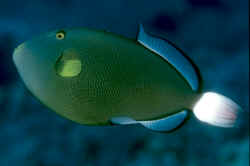 Trapped Trigger I emailed a few days ago about my Huma Huma trigger being trapped in a rock for a least a few days. I've been having trouble with my email lately though, so I'm not sure if you guys received it or not.<I don't know if we did...this was just placed in my box. sorry> At any rate, my trigger was trapped, I took pliers to the rock & busted it up, freeing him. This was 2 days ago. Since his escape, he's been lying at the bottom of the tank under various rocks, not eating or swimming. How long can I expect him to be in shock, or should I even expect a full recovery.<I would check your water quality, hopefully he will fully recover.> Also is there anything I can do to help him?<water change?> Thank you very much for your help in this matter. <IanB> Dean Blue Throat Trigger WWM gang, Great site. I recently purchased a male Blue throat trigger. About 4 inches long, appears to be in excellent health. I have him in a quarantine tank (~40gals) by himself. He's been in there a week with no signs of any parasites. He ignores any food other than fresh water "ghost shrimp" however. I've tried a variety of frozen foods, but he shows no interest. A ghost shrimp however, is immediately hunted down and eaten. I've been adding a little bit of frozen food with the shrimp in hopes that he might accidentally eat it and figure out that it is food, but no luck. Intend to try some raw fish, muscles, etc. from the grocery store tonight. Two questions: 1) Any recommendations as to how to teach this fish to eat something other than ghost shrimp? 2) Would it be a good idea to move him to a display tank now, i.e. is he likely to learn to eat other food from seeing his tank mates eating? He is headed to a 125gal that is networked into 500 gal system w/ large sumps and skimmers. Thanks in advance for your help. Dick >>>Hey Dick, It's just a matter of time. Some fish take weeks or months to acclimate to a wide variety of foods. As long as you have him eating something that is nutritionally sound, you're doing fine. I had an emperor angel that wouldn't eat anything but brine for weeks on end, then one day something just snapped and he started accepting frozen foods. Continue feeding the ghost shrimp, soaked in Selcon, and keep offering other foods. He will come around. Don't cut his quarantine period short whatever you do. Cheers Jim<<< Sick Triggerfishes : help me ASAP I have 2 trigger fish 1 Picasso and 1 clown I have been watching my clown and he is getting pale almost so u can see through him but he is eating perfectly and the picas is barely ever swimming always laying down or in the barnacle never eating. so can u help me ASAP <Umm, need more information, much more. At the very least though here I would execute a large (25% or so) water change NOW, and another tomorrow in hopes that if there is an overt environmental problem (poor water quality, lack of oxygen...) the water change will alleviate this. Do you have test kits? What are they telling you? Tell me/us about the history of your set-up... size, components, how long it's been going... What other livestock do you have, what are they doing? Bob Fenner> One Gill?? Hi there I was wondering if you could help shed some light on a small problem.<MikeD here and I'll sure try> I have a Juv. Picasso trigger in my tank who has been pretty happy for the past week.<Meaning that he's new and has been in the tank for about that time?> This evening I noticed something strange - he seems to be breathing with only one gill. One gill is 'puffing' while the other is being held pretty still. Also the one that is working seems to be doing double time (suppose that is to be expected). He was fine during the day (at least I did not notice this during the day) and, I suppose like all triggers he is happy to feed - just breathing a bit fast out of one gill. Could the gill maybe have something stuck in it?<The answer is yes, but probably not what you expect. If it's indeed a new and small fish, there's a good likelihood that what you're seeing is the beginning of an ick infestation and the parasites on the one side are the reason for its immobility. Very small fish often pass away from ick infestations without the owner ever being aware of what the actual problem is. With the tough, leathery skin of a trigger, it's not unusual for no visible "spots" to show, while the parasites in the gill effectively create a fish version of pneumonia, with suffocation often the actual cause of death> Any suggestions on what I can do or should I just leave it for a while?<My suggestion would be to set up a small Quarantine/treatment tank and dose with one of the formalin based Ick treatments (Quick Cure, for example) dosed at half the suggested amount (the small size and labored breathing would indicate that full strength may prove too much for the fish to handle. I'd suggest against the hyposalinity treatment because, frankly, I doubt you have the time. As always, NEVER medicate in your main tank proper.>> Thanks Anthony Help! Sick Clown Trigger Hello,