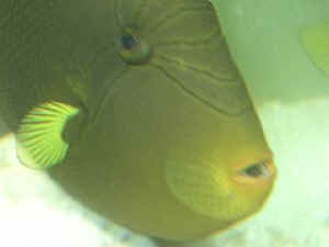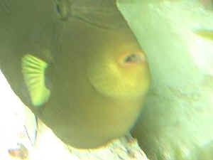 you, John Boiled Trigger With A Side Of Veggies! Hello<Hi! MikeD here>, I feel intimidated writing to such all knowing people as yourselves<Wow! I've been called a lot of things, but this is a first>. I came home yesterday to find my 100g trigger w/LR tank at around 90*F yesterday!<Ouch! Been there, done that!> My heater seems to have gone crazy because it was still on!<yep, occasionally the contacts fail or something similar...how DARE they not make a PERFECT piece of equipment?> My red tooth trigger was twitching and really mad. I was able to bring the temp down to a normal 78*F over the next 5 hours.<Good move.> I had a jbo 200w that the settings never seemed to be right. I am now switching to 2 150w heaters of the same brand.<A wise safeguard. This way if ONE sticks on, it's still not enough to "cook" the tank.> My question is do you think the trigger may have suffered some sort of hyperthermia related brain damage?<No, the temperature rise isn't high enough to do serious damage if it only got to 90 degrees> He isn't twitching anymore but still seems angry.<Liley because he's angry> (More so then the normal angry trigger syndrome) I really love this fish and don't want to loose him.<Fully understandable. You'll want to watch him very carefully for signs of an Ick outbreak and have a Q/hospital tank set up just in case, as rapid/severe temperature changes often weaken fish to the point that they are susceptible to an infestation of this troublesome parasite> My other question is do you think that skimmate would be good for my garden?<Not unless you're looking to eliminate your garden. Don't forget that this is a SALT WATER tank and that "salting the earth" has been a famous way of making sure NOTHING grows there since biblical times!> It smells just like the fish emulsion at plant shops.<Smell can be deceiving and "bad" doesn't always mean good for a garden, as you've just learned, and luckily, not the hard way> Thanks for your help.<You're welcome> Nate D - Trigger Ich - Thanks again for your previous response. I check my water quality on a regular basis and it always measures out fine. However my fish keep getting ich. I was told that dropping the salinity down to 1.014 the fish would still live but ich cannot. <This combined with other treatments can help.> I have tried it for about a week now and they are still scratching. I only have two medium sized triggerfish in a large tank. Do you have any suggestions? <Might consider catching them and putting them through a pH and temperature adjusted freshwater dip... and perhaps even leaving them in quarantine for a while and running the tank fallow for six weeks or so.> The tank has been set up for about 2 months now. <That's actually not very long... could be you are having water quality issues which cannot be measured... would step up the water changes and get some other options up and working... for instance quarantine tanks.> What are your thoughts on a U/V sterilizer? <These provide some amount of good, but are not instantaneous cures and typically need low flow rates to actually kill Protozoans - slow enough that the sterilizer will take weeks to see all the water in the tank. So yes, it will do you no harm, but no, it probably won't help in the immediate term. Please read here: http://www.wetwebmedia.com/parasiti.htm Cheers, J -- > Pink tailed trigger needs help Bob I have a pink tailed trigger in a 77 gal tank He has gone from dark green to almost a whitish Has almost like eye shadow above his eyes Swims with a bit of a list. <Sounds like this animal is stressed> also in the tank are two other triggers a lion fish and a dwarf lion. I am aware that it is a heavy bio load and I change 3.5 gal of water every day or two <... need a much larger system...> I have dose 10 mils of Cupramine (SeaChem) I have also bought and set up a vortex diatom filter and bought a Fluval 404 canister to take out copper I will set the 404 up next week currently has Fluval 303) <What were/are you hoping to accomplish with the copper?> my other trigger swim beside him and rub up against him and I think one other is infected any idea what is wrong?? what should I do?? <Get a larger system> I am new to salt water but have had fresh for a while (the 3 triggers do get along other than try to steal empty clam shells from each other) - les <And more. Les, your system is way overcrowded... physiologically as well as psychologically. Trade in all but one of those triggers or get a much larger system... a couple hundred gallons plus. Bob Fenner> Growth on Fin (4/07/04) Dear Mr. Fenner, <Steve Allen tonight.> I have a clown trigger fish he is about 5 inches long, and I've had him for about a year now. About 4 months ago he started to develop a fleshy looking tumor at the front side of the beginning of his left fin, though he is seemingly normal the tumor seems to have grown a little and now looks as if it growing around the back of the fin. Have you heard of this before and if so can you please tell me what I should do. He is currently in a 125 gallon tank with an Emperor Angel (about the same size), a Powder Blue Tang, and about 5 damsels. Thank you, Rene Brunetti <Is it white and lumpy like a wart? Check some pictures of Lymphocystis. Could be some sort of tumor or scar. Not much to be done if so. If you can send us some pix (jpegs of no more than a 2-300 kb), we may be better able to help.> Trigger Troubles (4/2/2004) Hi Bob, <M. Maddox here