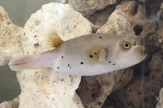 have a golden puffer in my saltwater tank for about three weeks and he’s