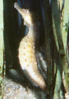 Other tube-mouthed fishes, the Seahorses, Family Syngnathidae. Cute, but amongst the most difficult marine fishes to keep, the Seahorses from the TWA fare no better coming from here than their congeners from the Indo-Pacific. Thankfully, the trade in the tiny Dwarf Seahorse, Hippocampus zosterae (3). is but a mere shadow of its previous years. The two larger endemics are not so fortunate. The Slender or Longsnout (H. reidi) (3). and Lined Seahorses (H. erectus) (3). both require specialized housing, dedicated "species" biotopes with considerable effort at culturing and preparing foods. Please don't attempt these animals without knowing full well what you're getting into, and dedicating the resources to their basic needs. Ecotype: Amongst attached (gorgonians, seagrass) or floating sargassum, in shallows.
