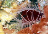Order Nudibranchia- Naked-gill sea slugs. Largest of the five Orders of Opisthobranch gastropods. Lack shells, are carnivorous (feed on sessile invertebrates like sponges, sea fans, hydroids, corals... some are predaceous on other nudibranchs.). Lack predators by and large themselves due to unpalatability, toxicity, venom... mainly from recycled molecules via their prey. Considering their small size, often bizarre body shapes and dazzling coloration, it's no wonder nudibranchs are often unidentified by divers, aquarists and tide-poolers for what they are; marine snails that lack shells, just like their lowly terrestrial cousins found sliming around under rotting wood and vegetation. But most of us emote "oohs" and "aahhs" rather than "yecch" when we view these "butterflies of the sea". Unfortunately, few efforts at keeping them in captivity have been successful. Many failures, as you'll see, are aquarist-originated; chemical poisoning, unstable conditions, and most importantly, starvation. Suborder Dendronotacea: Family Chromodoridae: