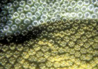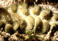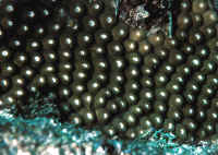 (about 9mm in diameter). At right, a massive colony in Bonaire.