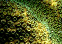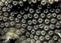 polyps on upper areas of colonies, dead, eroded below. Corallites