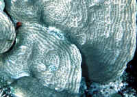Coral. Colonies as flat plates, mounds, domes. Ridges about edge