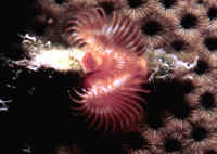 Worms, Family Sabellidae. Come in whites, pink, purple and