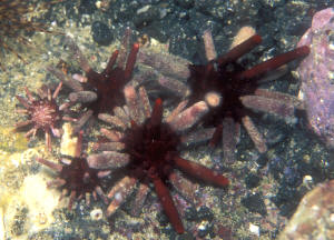 Urchin eating Chaeto 2/16/10 Flesh Eating Urchin, Urchin Snack? 1/15/09 Hi Guys, <and gals> Good morning! <Hi Ginger> I searched WWM and couldn't find an answer to my question, so here goes. We have a 45 gallon tank, water levels normal. <Parameters normal?> We have live rock and a few fishy friends including crabs, a blenny, a goby, 2 clowns, a butterfly fish and an urchin. Last night we (including my ultra shocked 7 and 9 year old children) watched our butterfly fish swim right into our sea urchin, which we believe is a Diadema savignyi (Long Spined Sea Urchin). Of course, as you'd imagine, it was quite dramatic to watch what appeared to be blood spread where it had been poked and watched the butterfly fish swim around sideways and lay down at the bottom of the tank sporadically, as it (and we) awaited its death. Understandably, the children were very upset, and we used it as an opportunity to discuss ecosystems and how they work. After they went to bed, I waited for it to die so that I could remove it before the morning came, but it didn't. It actually had a few moments of normal swimming, and while I knew it probably wouldn't have survived until morning, I didn't feel right taking it out while it was still alive. I'll never forget the first thing I heard this morning when I woke up; desperate voices cried, "Mom, wake up! The urchin is EATING TAD! HE'S EATING IT! SAVE HIM!" I dragged myself downstairs to see, and sure enough, the urchin was on top of the now deceased fish and looked quite happy. Another ecosystem chat ensued, but fell upon deaf ears. My question is, should I allow nature to take its course, or should I remove our deceased friend to prevent the water levels from taking a turn for the worst? <I would remove the fish.> And by the way, I thought these urchins were herbivores? <They will eat meat if given the opportunity. The spines of this urchin are venomous so it did not surprise me that the fish died and do be careful when maintaining the tank, you will not like getting poked with their spines.> Thanks for the help; it's appreciated. <You're welcome. James (Salty Dog)> Ginger Urchin Hitchhiker: Pencil Urchin - 1/31/08 Hello Crew! <Hi Andy!> About 4 weeks ago, I purchased a large piece of cured Fiji rock to round out my LR aquascape. It is a neat piece, with a big, winding hole running the length of the piece. Even though my LFS claims that the water in the LR tanks are not mixed with other water, I have seen fish in the tanks from time to time, so I placed the LR in my 30 gallon QT for 2 weeks just to be on the safe side. During QT, I can't say that I stared at the LR much other than when checking water parameters, etc. After the QT period, I placed the LR in my tank. About 2 days later, I was shining a flashlight into my tank to check out the nighttime goings on. When I shined the light in the hole of the new piece of LR, I noticed an urchin that is about 2" in diameter (body) (thankfully, the lack of acclimation--twice--didn't kill it!). From browsing WWM, I can confidently tell you that it's some type of pencil urchin, either a Eucidaris tribuloides or a Heterocentrotus mamillatus (my guess, since the LR is pacific, but it has characteristics of the former). <Okay> It is very elusive, so I haven't been able to get a picture of it (or even a good look at it). In fact, for about a week (and apparently, the entire time it was in QT) it didn't move from the cave. Since then, it has made an appearance outside the cave, but only briefly and then on the underside of this same piece of LR. It has now moved back into the cave (who knows where it goes at night). <It goes out to eat! These urchins are nocturnal foragers that, once they've found a nice little protected spot, tend to use it as their "home base". They wedge themselves into place during the day with the help of their thick spines.> My research leads me to believe that it likely poses little risk to its other tank mates--a Sailfin tang, a Gold Stripe Maroon Clown, a Brown Combtooth Blenny, a Royal Gramma, a Copperband Butterfly, 2 cleaner shrimps, 15 or so mushrooms, some type of tree coral (I keep meaning to send in a pic for an ID), a Lemnalia tree coral, two small colonies of pulsing Xenia, and a Trachyphyllia geoffroyi. My tank is 110 gallons, with about 90 lbs of LR, under-the-cabinet trickle filter (in which I run activated carbon that I change out every 2 weeks), a 30 gallon fuge (LR, a huge tuft of Chaeto, and 5" DSB (with about 1 billion bristle/fire worms) on a reverse daylight cycle), and a Coral Life Super Skimmer. My water parameters are: ammonia, nitrite, nitrate and phosphate all 0, temp 80*F, Alk is 3.5 meq/L, pH is 8.3, calcium is 400, and spg is 1.026 (I have a Salifert I2 test kit and a SeaChem iodine test kit, both of which show no appreciable levels, even after dosing with Kent Iodine over a period of days--I've since stopped adding Iodine until I can figure this out). <Good thinking. Please read over the FAQ's here at WWM, starting here: http://www.wetwebmedia.com/iodfaqs.htm > I use RO/DI water (mixed/circulated days in advance of water changes). <Excellent> I dose, as needed, with ESV B-Ionic 2-part buffer. Probably more than you need to know, but . . . <Hey, it's better to have too much information in these queries than too little!> So, to my questions . . . I'm a little worried about this guy starving, because he doesn't seem to move around much and there's not much on the new piece of LR to feast on. <Hmmmm, well he's undoubtedly moving about at night to feed. That's typical for these urchins. What we don't know is which species it is. Some are mostly herbivorous, while others dine on corals, sponges, tunicates, bryozoans, snails, etc. Some even employ those spines to trap/kill fish, shrimp, and other organisms.> I have tons of coralline algae (too much), but the urchin doesn't seem interested in finding it. An attempt to plant Nori would meet with immediate failure, as the Sailfin Tang a