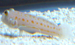 Hello, I have a diamond/orange spot goby that is about 2" long.