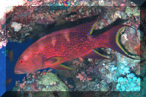 With the opening up of marine collection in the Red Sea, many organisms have become available which before cost an arm, leg and a nose. It was just a few years back that a purple tang (Zebrasoma xanthurus), golden butterfly (Chaetodon semilarvatus), asfur and blue moon angelfishes (Arusetta asfur, Pomacanthus maculosus) et al. would set you back a few hundred dollars a piece. Such is no longer the case; why, at the last InterZoo trade show in Germany (1996), I saw yellow tangs from Hawaii being sold for about the same as purples hailing from the Red Sea. This continued growth in developing collecting stations and adequate transport (roads, airfields) is a real boon for aquarists. Depending on who you side with technically, the Red Sea near-shore fishes are something between 17 and 32 percent endemic (found only there). What's more, many are very hardy and absolutely beautiful. Many fishes with wider ranges, that "typically" have poor records of survival in captivity (e.g. the regal angel, Pygoplites diacanthus, Naso lituratus, the Naso, Lipstick Tang or Orangespine Unicornfish is) do remarkably better coming from the Red Sea. Such is the case with this articles feature species, the lyretail grouper, Variola louti ("vare-ee-oh-lah lout-eye"). This beauty does range over the western Indo-Pacific, all the way to the Indian Ocean; but the best specimens, color, hardy and number-wise are to be had from the Red Sea. Classification: Taxonomy, Relation With Other Groups There are several (from the Middle English meaning "many") groups of fishes called "basses"; here we are talking about the real thing, the family Serranidae. Some salient characteristics of true basses: Opercle (gill cover) with three spines; one main spine with a lesser spine above and below. Real basses have lateral lines that are complete and continuous. Their pelvic fins bear one stout spine and five soft rays. Three anal fin spines. Seven branchiostegal rays (the cartilaginous gill supports). Usually 24 or 25 vertebrae. There are three to fifteen subfamilies of serranids recognized depending on whose taxonomic scheme you're into, @ 64 genera, and 449 species. Some notable members? True basses and groupers, hamlets, fancy basses, Coneys, Tukas, Marine "Bettas", Soapfishes. Most are marine (a few freshwater); worldwide tropical to temperate seas, shallows to more than a thousand feet. Science recognizes two species in the genus Variola: