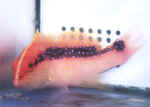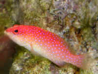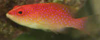 Trigger & grouper question 8/21/05 Hi, I have had good luck with my undulate trigger with many other triggers in the tank. <Thus far...> I firmly believe that each fish is it's own self and that you cannot always judge a fish by it's species. I have a few questions, first, what is the largest undulate you've seen in a personal aquarium? <Overall length, about twelve inches> Second, starting at 5", what should I expect a clown trigger's length to be in a year given daily 'good food' feedings (i.e. New Life spectrum pellets, shrimp, squid, cuttlefish)? <Perhaps seven-eight inches> Lastly, at what length does a Louti grouper change from the juvi colorings, to the red body with yellow fin margins? <Most at about six to eight inches> Thanks, Dan. <Bob Fenner> Variola albimarginata, white margin lyretail grouper Hi I have just received a fish which I am having trouble identifying, I originally thought it was a Variola albimarginata, white margin lyre tail grouper. However on closer examination it appears to be slightly different, it is still small at around 7 cm.s with a white line from its upper lip through its eyes just like Variola albimarginata, however the spots are red and its fins are clear, all references I have come across seem to show only adults, do you have any experience with this fish as a juvenile? <Mmm, not this small... you might look on fishbase.org under the genus... and comb through the species... left click their images to see all... and look at the Google Images link per species as well... You might have another Variola species...> Thank you for your time, I am trying to get a decent photo of this fish but as always it is apparently camera shy. Jamie Short <Do send that pic along if you can. Bob Fenner> Grouper, et al. ID, husbandry help... Hello again. I have a couple of new fish questions- The first: I saw a grouper, I am guessing it's Variola sp. because it has a lyre-shaped tail, but it has a white stripe down its face and small white margin on its tail. I thought it might be albimarginata for obvious reasons, but when I saw photos of juvenile individuals they did not look like this one (only three inches being generous, and already looking very red, with vertical bars, not horizontal). Is this correct? <Possibly. Take a look at the pix of this genus' members on fishbase.org> If it is, I couldn't find much info on this so-called "cherry grouper" and I was wondering what its maximum length would likely be (probably around 2 feet, right?)? <Something like this, yes> The second question: I actually read the literature on your site about this fish, but it mostly was written by other people. And I couldn't find any solid info about it after I identified it (even tried the Google search and didn't find the image you spoke of). It is Vespicula depressifrons, the leaf goblinfish, or more commonly seen as the Indonesian butterfly goby (although I know not why). <As Shakespeare gets credit for: "What's in a name?"> Can you give me some natural history on this little guy? <Mmm, none. Have not seen others experiences, had any of my own with this fish> I bought one (because they were only three dollars and if it dies it would be sad, but not like the death of an imperator angel or anything), it was being kept in fresh water like so many unfortunate, misidentified fish in the pet trade, so I put it in a freshwater quarantine for the time being, but I am more than suspicious that it is truly a brackish fish. I have added a little bit of salt, since it must be at least a hard water fish and should be able to tolerate it. I think I should keep adding, however. Am I correct? Thanks again. Reuben <Take another look on fishbase here. Bob Fenner>