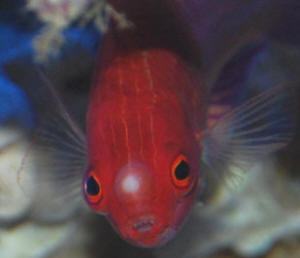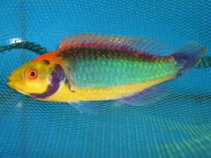 Scott's Fairy Wrasse with a huge swollen blister or growth on the