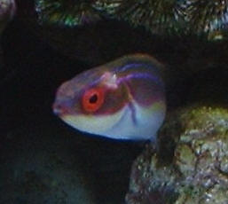 lineatus wrasse. He is apparently not a happy camper. He has white