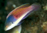 Don't Pass Up A Wrasse! Hello, <Hi there! Scott F. here today!> I have a 125 reef with mainly soft corals, LPS corals. I have peaceful fish: 3 purple Firefish, 3 red Firefish, 1 green clown goby, 1 threadfin goby, 1 citron goby, 1 red head goby, 2 maroon clowns, 1 rose e quad. anemone, a green e. quad, 4 cleaner shrimp, 3 fire shrimp, 6 peppermint shrimp, 4 green Chromis, and two neon blue gobies in the mail as I write. <My kind of fish population! Small is beautiful, especially in a large tank!> I am very interested in ordering a fairy wrasse or a flasher wrasse. I have reviewed the marine center page and there are so many I am overwhelmed. I have tried to avoid difficult species. (I just don't like killing things.) <I can dig that!> Could you recommend some hardy, compatible, pretty species for me that stay small? <Well, there are, as you stated, many, many different species that stay small, are colorful, and are easy to care for. In my experience and opinion, you could do well with many Cirrhilabrus species. I really like C. solorensis, C. rubriventralis, and C. scottorum (heh, heh, heh!). If you're like me, and want to support the "home team", you could get a C. jordani (Hawaiian Flame Wrasse)...> (I prefer lots of small colorful fish, rather than a few big ones, although I am seriously considering setting up a fish only tank b/c dog face puffers and cow fish are just too cool.) <Diggin' this! My thoughts exactly, bruddah!> Are fairy wrasses and flasher wrasses really reef safe, or are they like Centropyge's where you're always taking a chance. <No- they really are "reef safe", being strictly planktivorous, and not interested in corals or sessile inverts at all. Maybe the only caveat with these fishes (and one that's frequently overlooked by most hobbyists, IMO-is that they are predominantly found in deeper water, and seem to behave more "calm" in less brightly lit tanks (or perhaps, 20000k would be a nice compromise)...Yes, they will adapt to brightly lit tanks just fine, but this is just something that you may want to think about when planning for these fishes. They can be kept individually, or in small groups- like 3 females to one male...or groups of 5 (3 females to 2 males)...> Thank you for your help, John Kim <Any time, John! Good luck with your tank(s)!> Don't Pass Up A Wrasse (Pt. 2) Scott, <Good morning!> I forgot to mention that I have one blue mandarin. Will the wrasse compete with it for food. Again thank you for your help. John <Well, John, I'd have to say an unqualified "no". Fairy and flasher wrasses tend to pick food from the water column, whereas Mandarins generally confine their feeding to the substrate and rocks. Sure, the odd Fairy Wrasse might pick something off the rocks now and again, but the vast majority of their feeding does take place in the open water. Hope this alleviates any lingering concerns you might have. Good luck! Regards, Scott F> - Fairy Wrasses - Since fairy wrasses are peaceful fish, could two of different species co-exist? What if one was added a few weeks after the first. Specifically Laboutei and exquisite. <Well, for starters... it really depends on the size of the system. But provided the system is large enough, I would say it would probably work, however your chances are better with a male and female of the same species rather than different species. Cheers, J -- > Re: Flame wrasse Thank you for your advice on the flame wrasse, I will keep him in QT for a week and if he looks good then place him in main tank. I did have another question though. I noticed he has a dark reddish color on his belly about the length of his body, I don't know if this is part of his coloring, do flame wrasses generally have a dark color on the under side? <This is natural for this species, particularly the males.> I couldn't find any pictures that show their belly side. <Please see here: http://www.wetwebmedia.com/marine/fishes/wrasses/cirrhilabrus/index.htm> My concern was that it could be some type of toxicity, possibly from the freshwater dip that he didn't seem to like, is this possible? <Yes> All water parameters are good. If it is a problem is there any thing I can do for him? <Not much to do here> Thank you again for all your wonderful advice, you have saved my fishes lives in the past. Kylee <You and we have my friend. Bob Fenner> Re: Flame wrasse Hello, I got a flame wrasse yesterday, I gave him a very very short freshwater ph adjusted with methyl blue dip, about a minute because he looked like he was dead after being put in the dip so I quickly took him out and put him in the quarantine tank. <Good move> He has been hiding ever since. I have fed him Mysis which he will poke his head out to eat, but he has never once actually swam out and around. I know they can be shy at first, but how long in hiding until it is actually a problem? <Likely for a few weeks after it is moved into your main/display tank... as you state, this is a shy, retiring species> Also I read in the faq's that QT is hard on this fish and sometimes is better to just place in main tank. <Correct> I am wondering if I should do that, the QT tank that he is in is very small, 10 gallons. From what I can see of him, he appears healthy, color good, breathing good, but hiding. I recently went through a fallow period and a battle with ick, my 2 fish made it through but I do not want to risk introducing a new fish without QT unless it necessary. <I would wait here> Is this fish generally parasite free and could it do with a shorter QT period, how short? <At least a week> Any advice I would love. Thank you, Kylee <You are welcome my friend in fish. Bob Fenner>