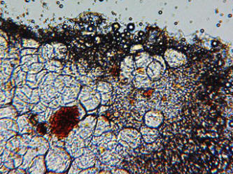<Mmm; these spots may be from irritation of some sort... mucus accumulating....