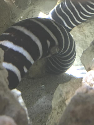 Related FAQs: Zebra Morays 1, Zebra Morays 2, Zebra Moray ID, Zebra Moray Behavior, Zebra Moray Compatibility, Zebra Moray Selection, Zebra Moray Systems, Zebra Moray Feeding, Zebra Moray Reproduction, Moray Eels in General, Moray Identification, Moray Selection, Moray Behavior, Moray Compatibility, Moray Systems, Moray Feeding, Moray Disease, Moray Reproduction, Freshwater Moray Eel FAQs, Snowflake Morays, Ribbon Moray Eels, Other Marine Eels,