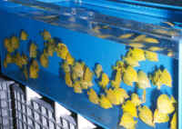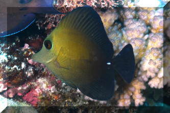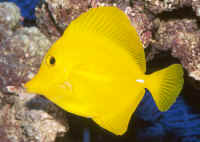 Our old service company used to have a Yellow Tang in most every saltwater account. With their conspicuous golden yellow color, active, skipping-like swimming and hardy nature, yellows made long-term customer pleasing additions. Ours came from the U.S. Fiftieth State. The Yellow Sailfin Tang makes up the bulk of pet-fish collected out of Hawai'i, and rightly so. It is best from there.