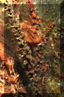 sea fans, black corals. Here in N. Sulawesi on the skeleton of a