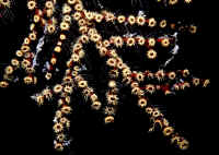 Polyps of about 1/8" diameter bear 20 brown to yellow pointed tentacles,