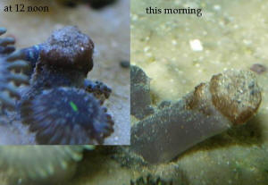 polyps and the Zoanthids just barely open up. Could this be a result of